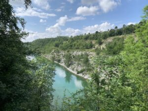 Het waterweggetje kun je een heel eind volgen, tot aan Beckum. Dat doe ik bij lange na niet, ik wandel tussen de wijngaarden door met witte, rose en rode druiven. Ze hebben hier de allermooiste picknickplek. Een giga druivenvat en dat is zo leuk ingericht!