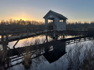 Kikkers en vogels spotten. Misschien zelfs kraanvogels. Of kalfjes bij de heckrunderen.